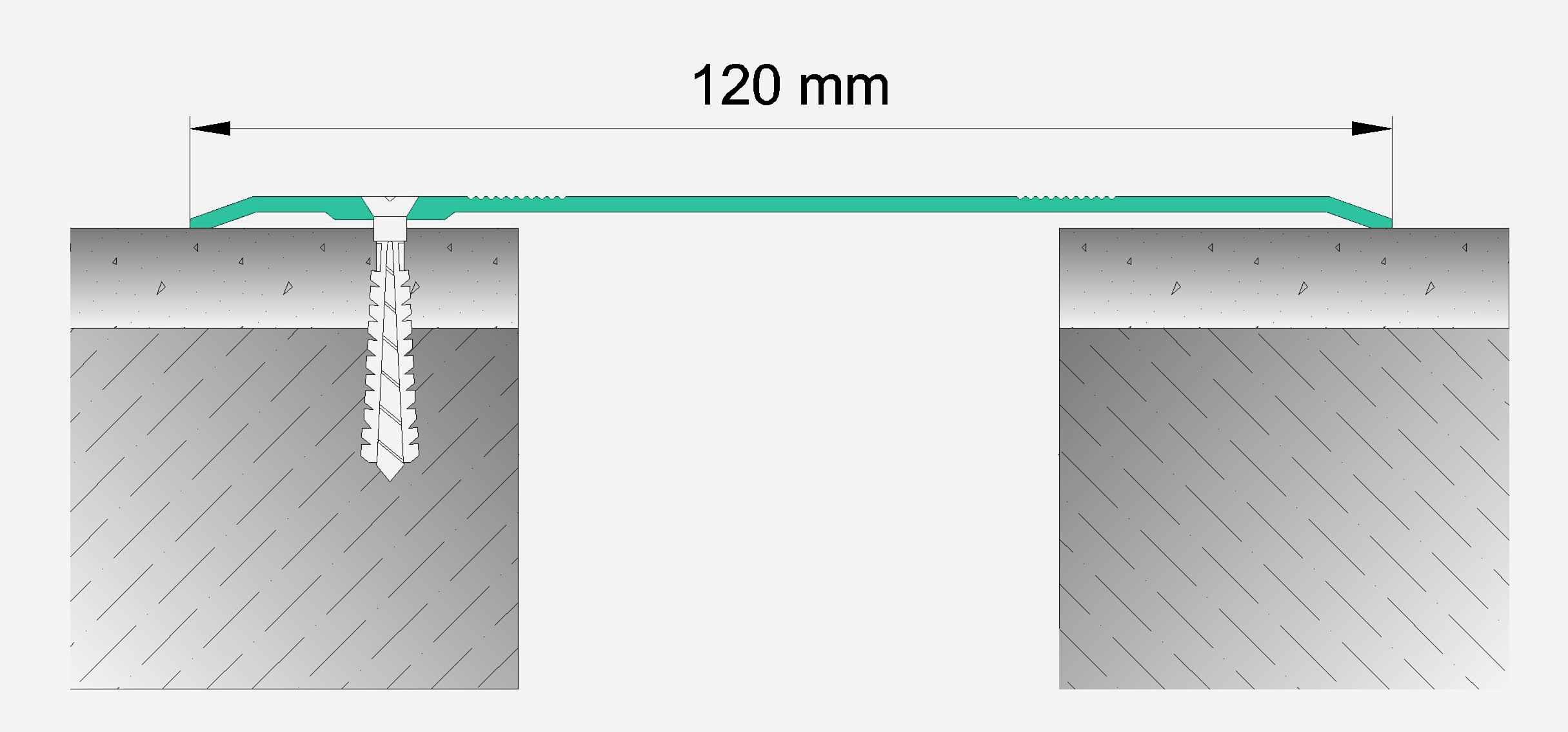 120 mm Ebatlarında duvar-tavan-zemin kapak dilatasyon profili.