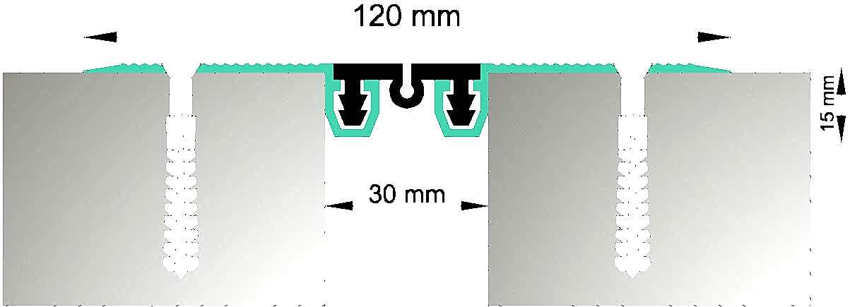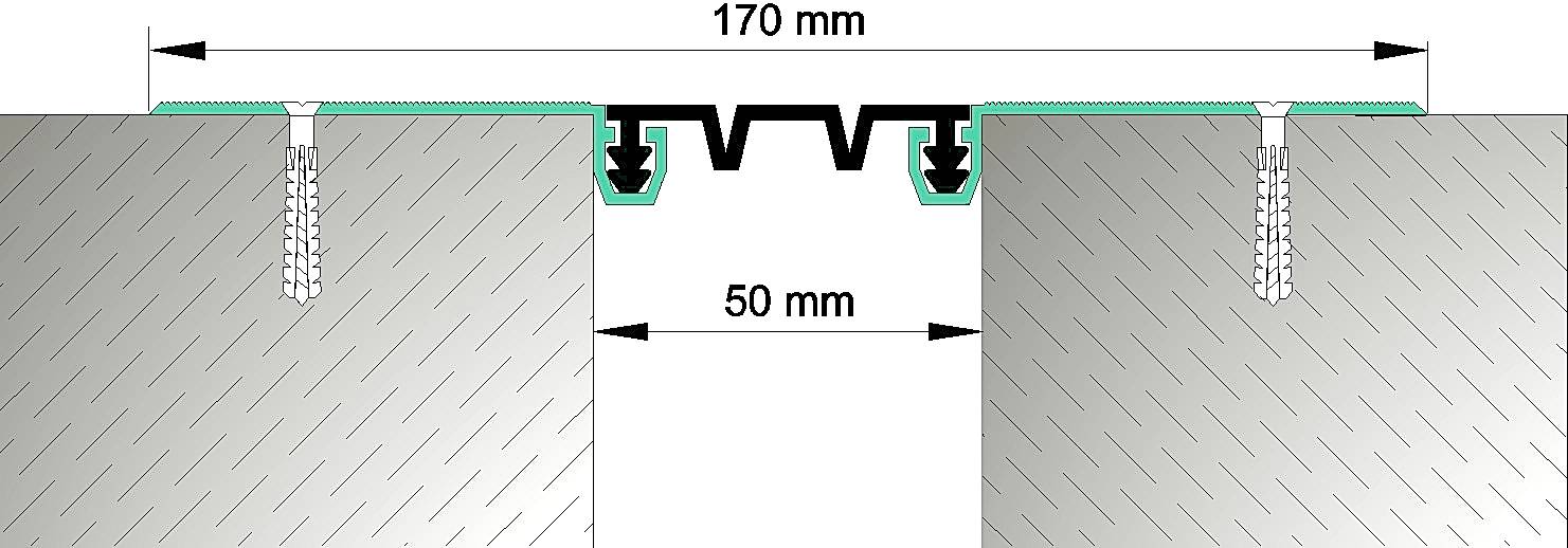 Yapıştırma seramik, granit seramik, vb zeminlere uygun kaplama altı dilatasyon profili.