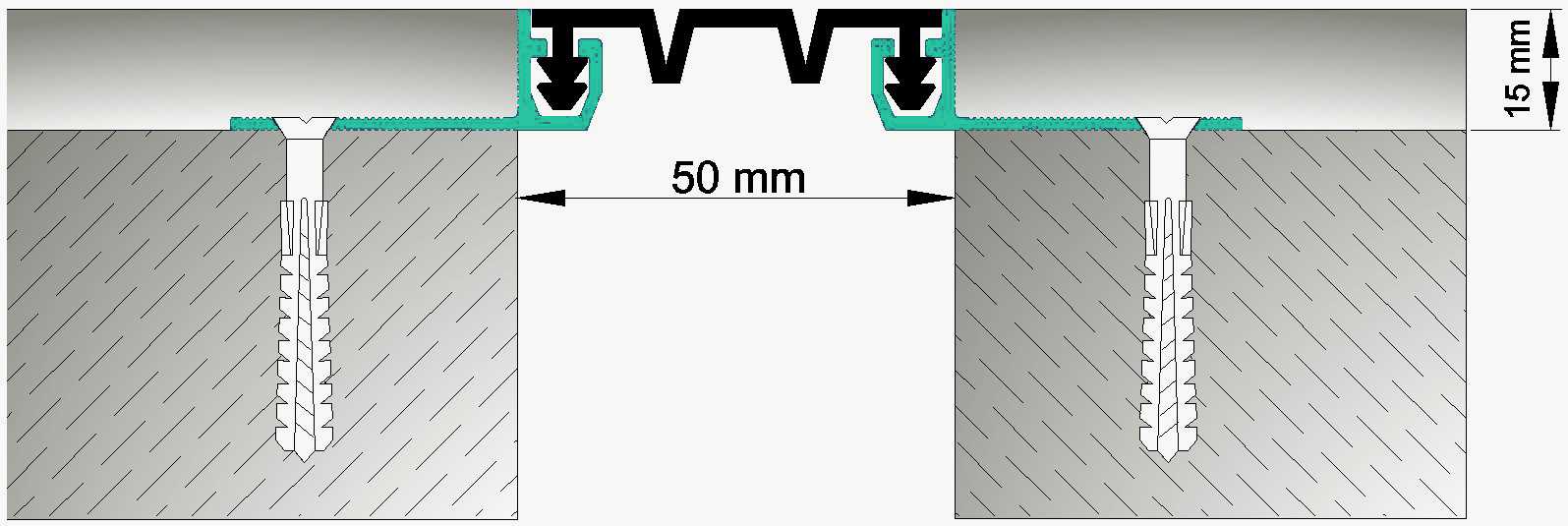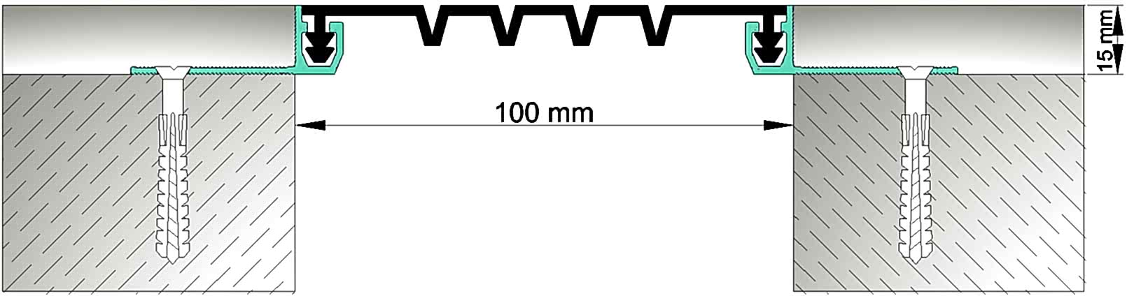 Yapıştırma seramik, granit seramik, vb zeminlere uygun kaplama altı dilatasyon profili.